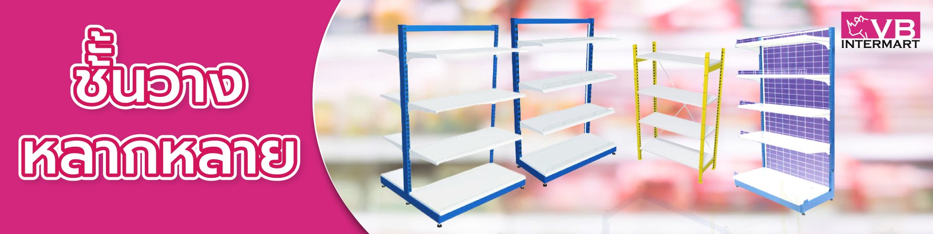 ชั้นวางสินค้ารุ่นมาตรฐาน แผงหลังตะแกรง เหล็กหนารับน้ำหนัก 50 ก.ก./แผ่นชั้น ใช้สีฝุ่นอบความร้อน มาตรฐานโรงงาน